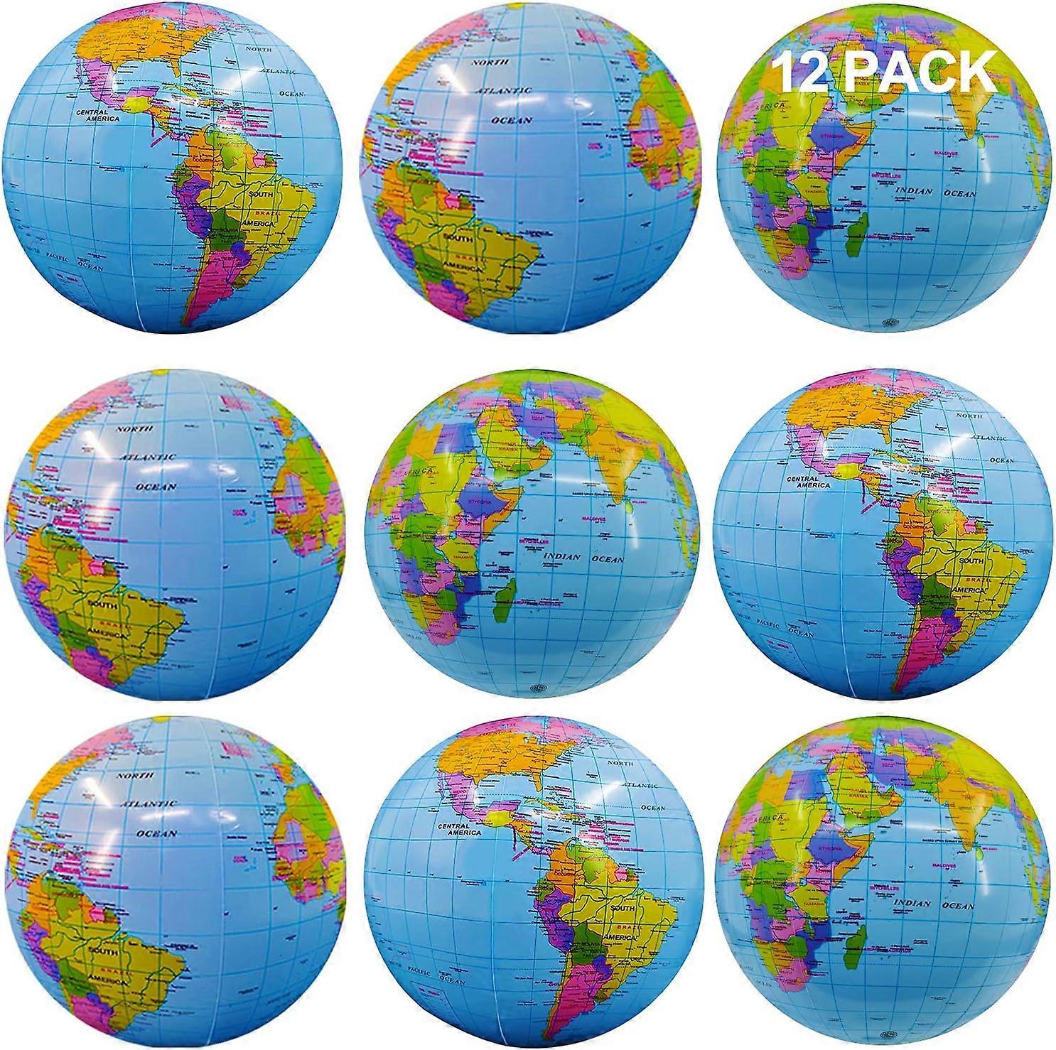 12 Pack Inflatable Beach Balls Bulk Jumbo 16" World Globe Pool Toys Balls for