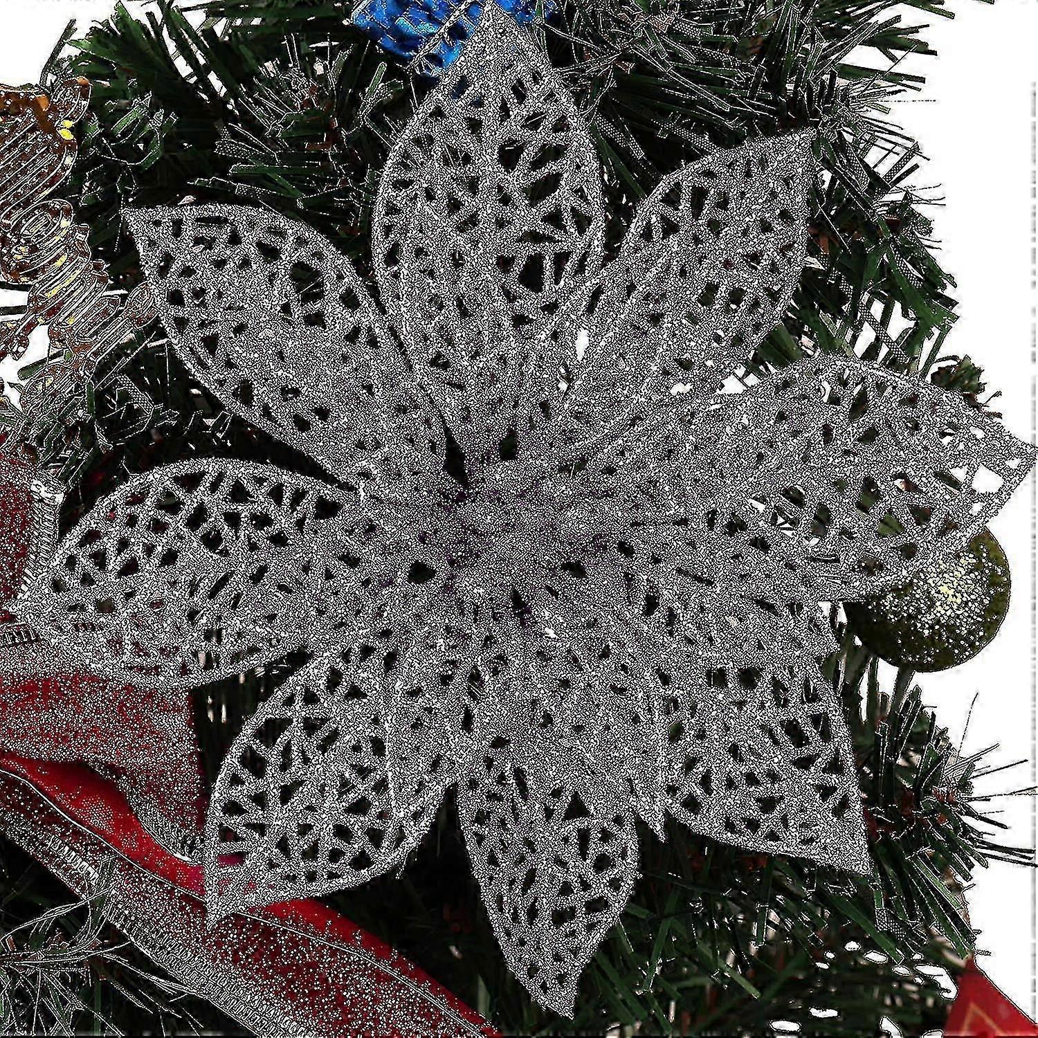 12 Packs Glitter Poinsettia Christmas Tree Ornaments,christmas Decorations Flower 5.5" Wide For Xmas