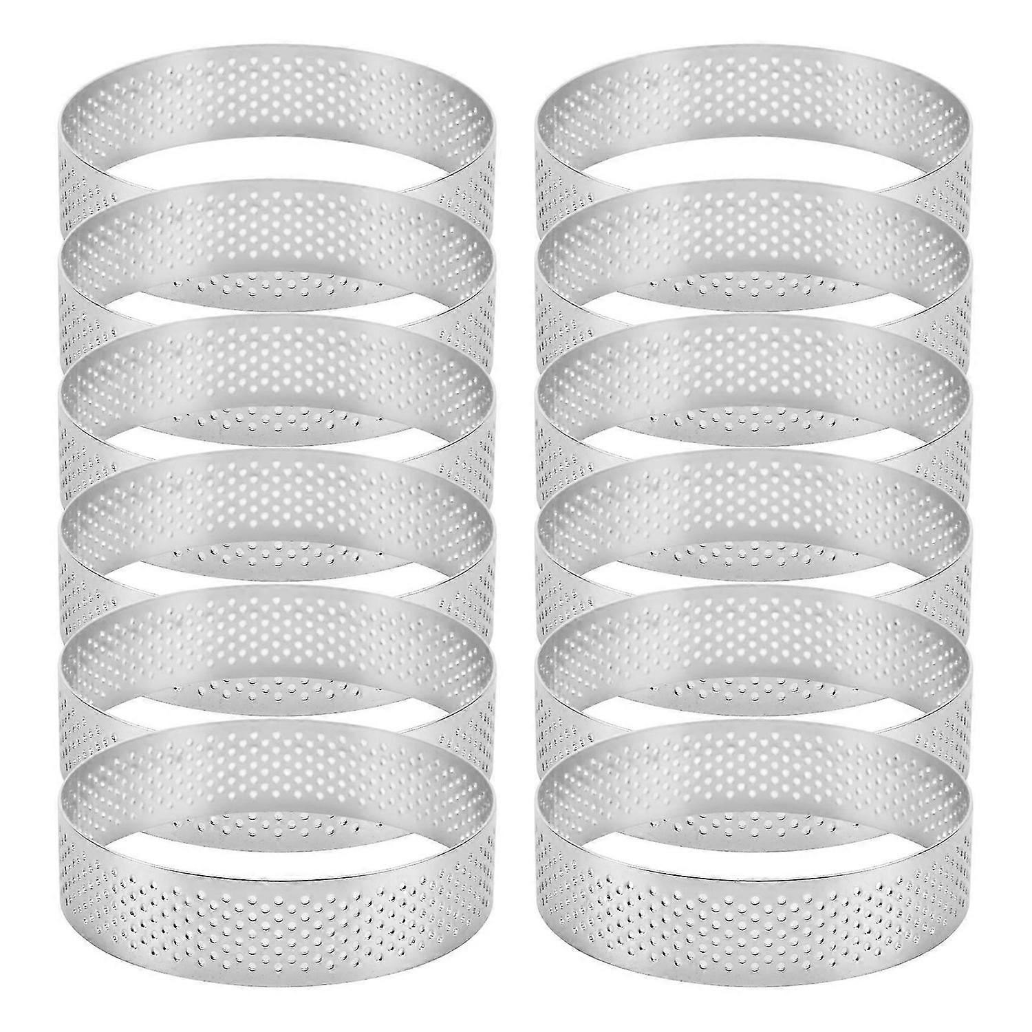 12 Pack Stainless Steel Tart Rings,Perforated Cake Mousse Ring,Cake Ring Mold,Round Cake Baking Tool