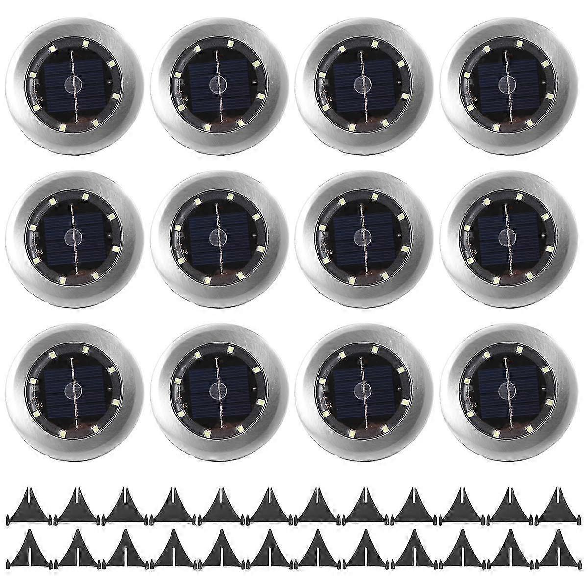 12 Pack Solar Garden Lights Outdoor Waterproof, 8 LED Disk Solar Pathway Lighting for Yard Patio Lawn Landscape