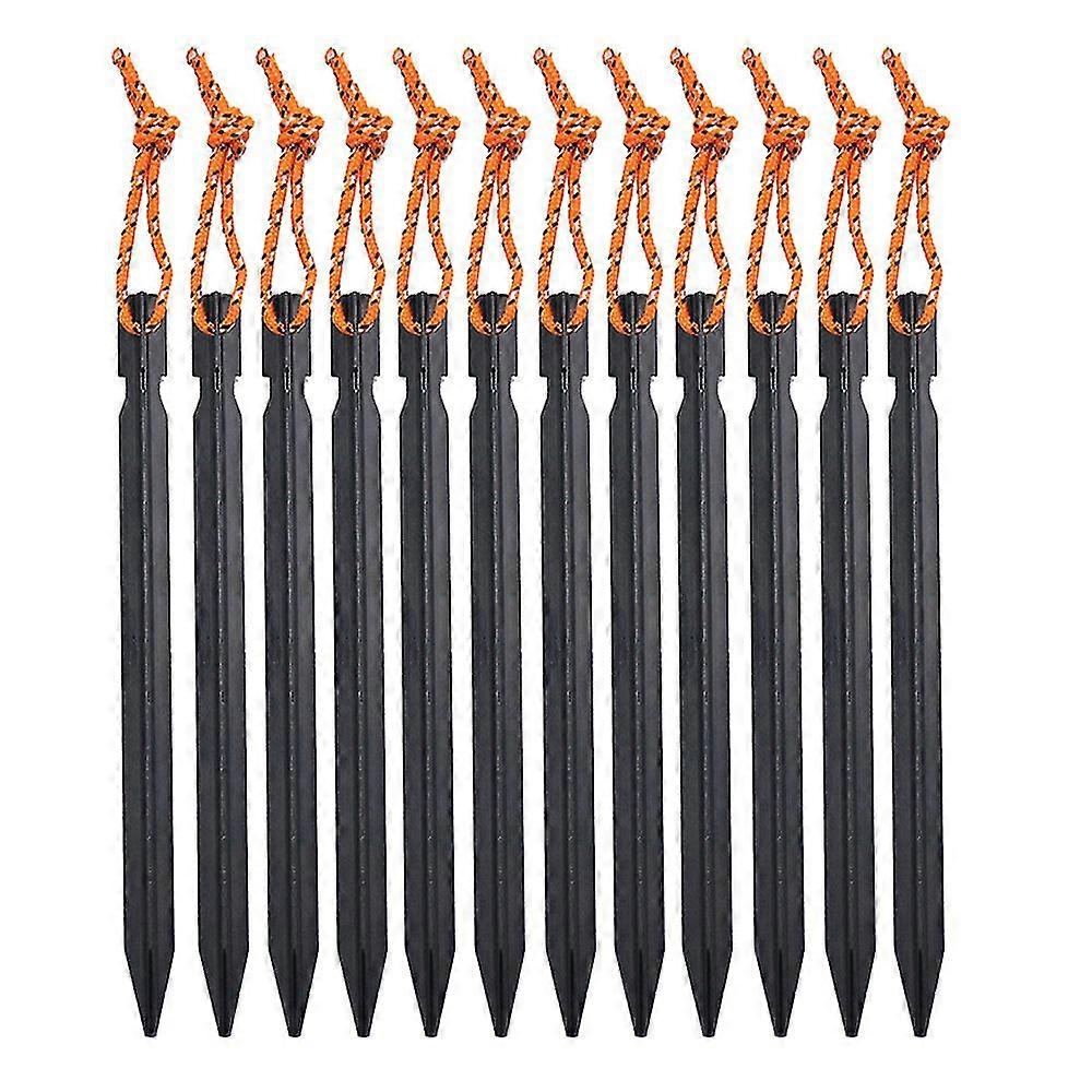 12 Pack Tent Stakes-Outdoor tent sky curtain ground nail aluminum alloy camping camping three-edged bold tent nail with rope 18cm