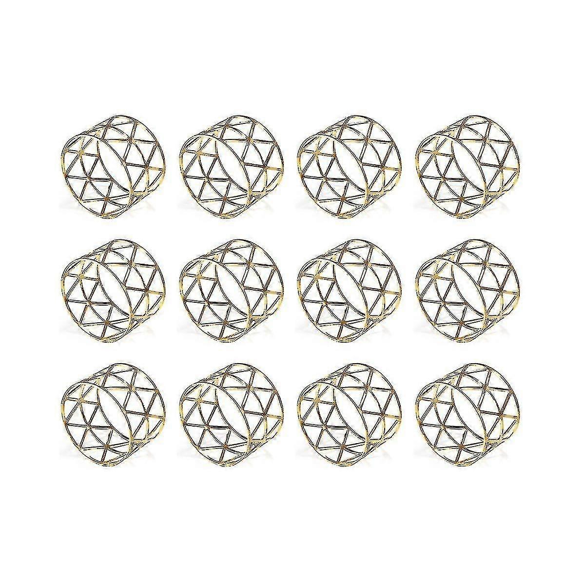 12 Pack Napkin Rings Holders Hollow Design Decor Wedding Christmas Gathering (gold)