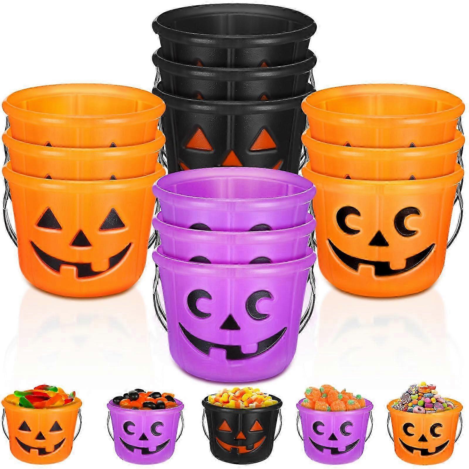 12 Pack Halloween Plastic Jack O'Lantern Candy Baskets for Party Supplies