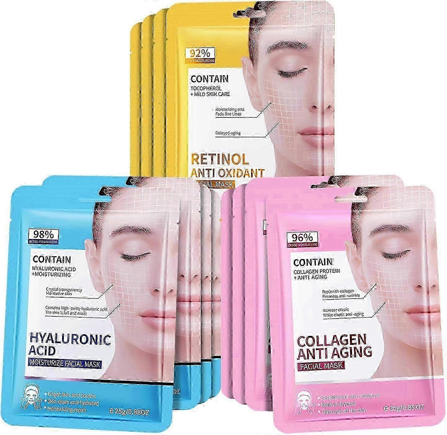 12 Pack Face Masks Skincare, Collagen Face Masks for Women, Retino Facial Sheet Masks, Hyaluronic acid Hydrating Face Masks for All Skin Types