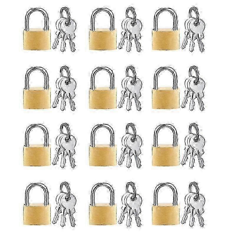 12 Pack Mini Brass Padlocks with 3 Keys for Luggage Backpack Gym