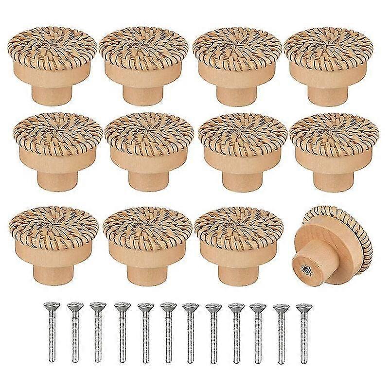 12 Pack Round Rattan Dresser Knobs Bohemian Style Hand Made With Screws Wooden Furniture Dresser Knobs For Dresser Drawers Cabinet Lo-ron
