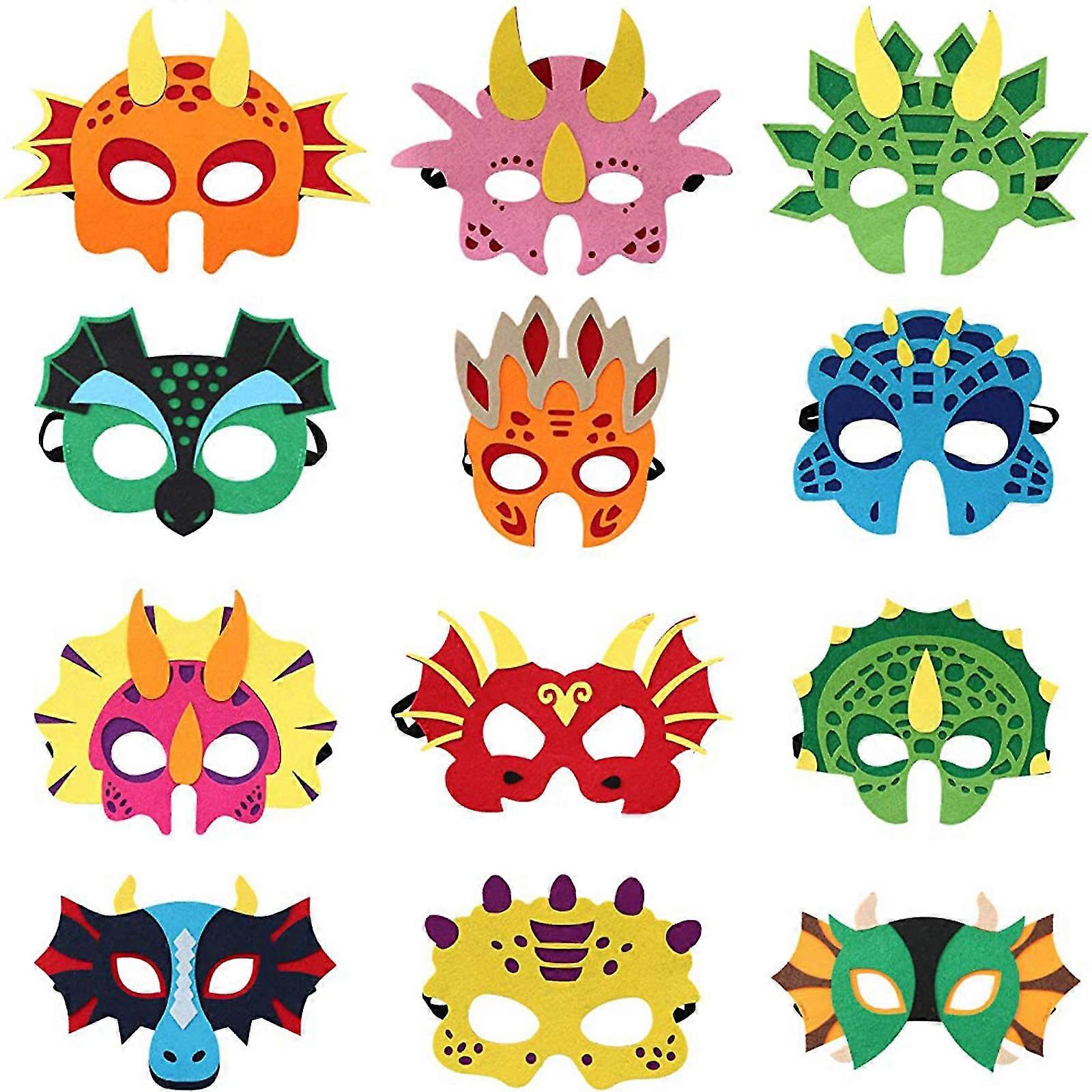 12 Packs Dinosaur Masks Party Supplies Felt And Elastic For Kid Dress-up Party
