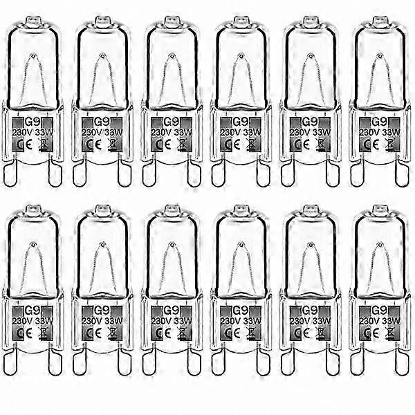 12-Pack Dimmable Halogen Bulbs, 33W 230V, Warm White 2800K, Clear Capsule, No Flicker, 380lm