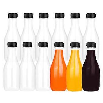 12パック10オンスジュースボトル再利用可能な透明なプラスチックジュースボトル、牛乳冷蔵飲料および自家製ジュース用キャップ付き