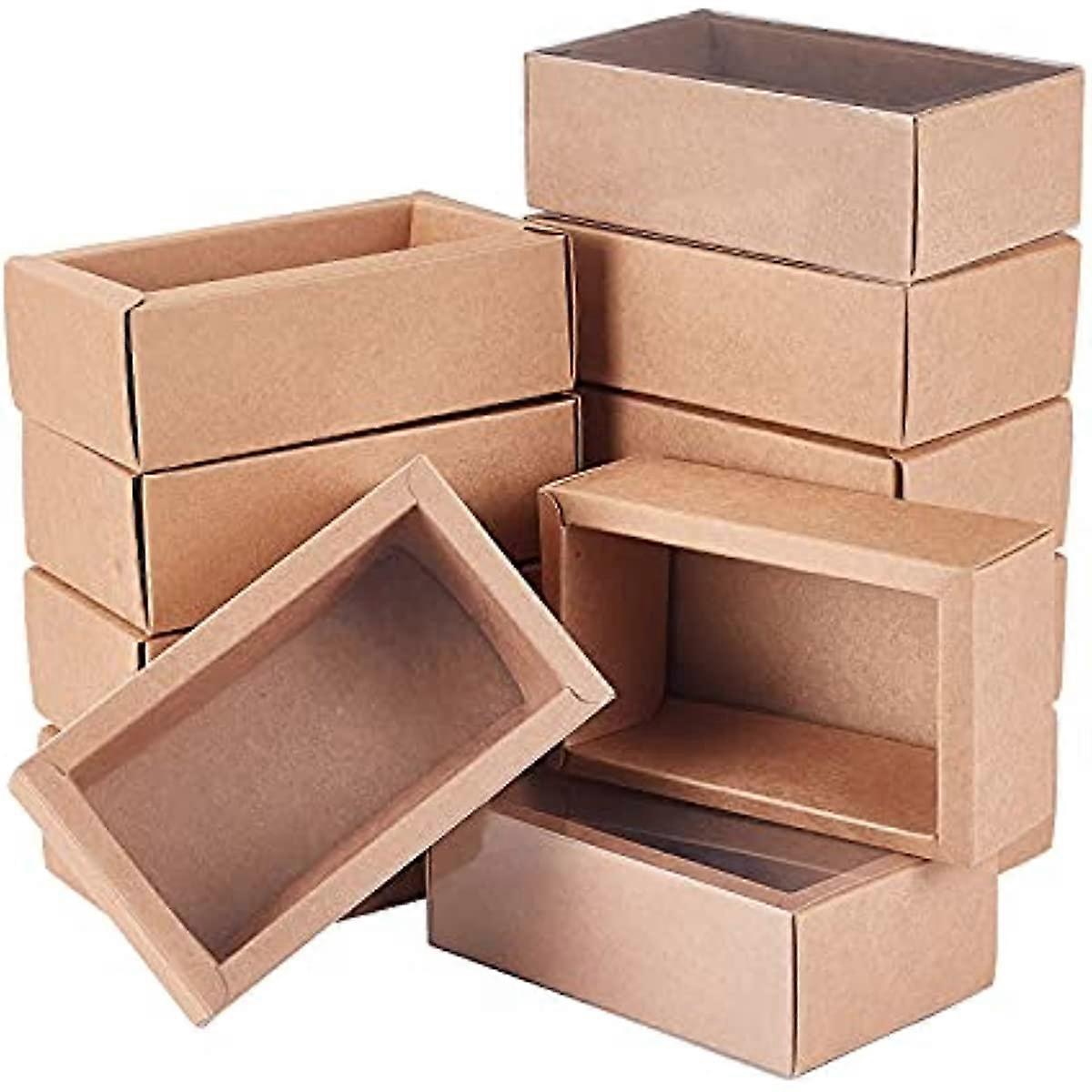 12 Pack 7x5x1.5 Inch Brown Rectangle Drawer Kraft Boxes with PVC Plastic Window for Party Favor Treats Candy and Jewelry Crafts