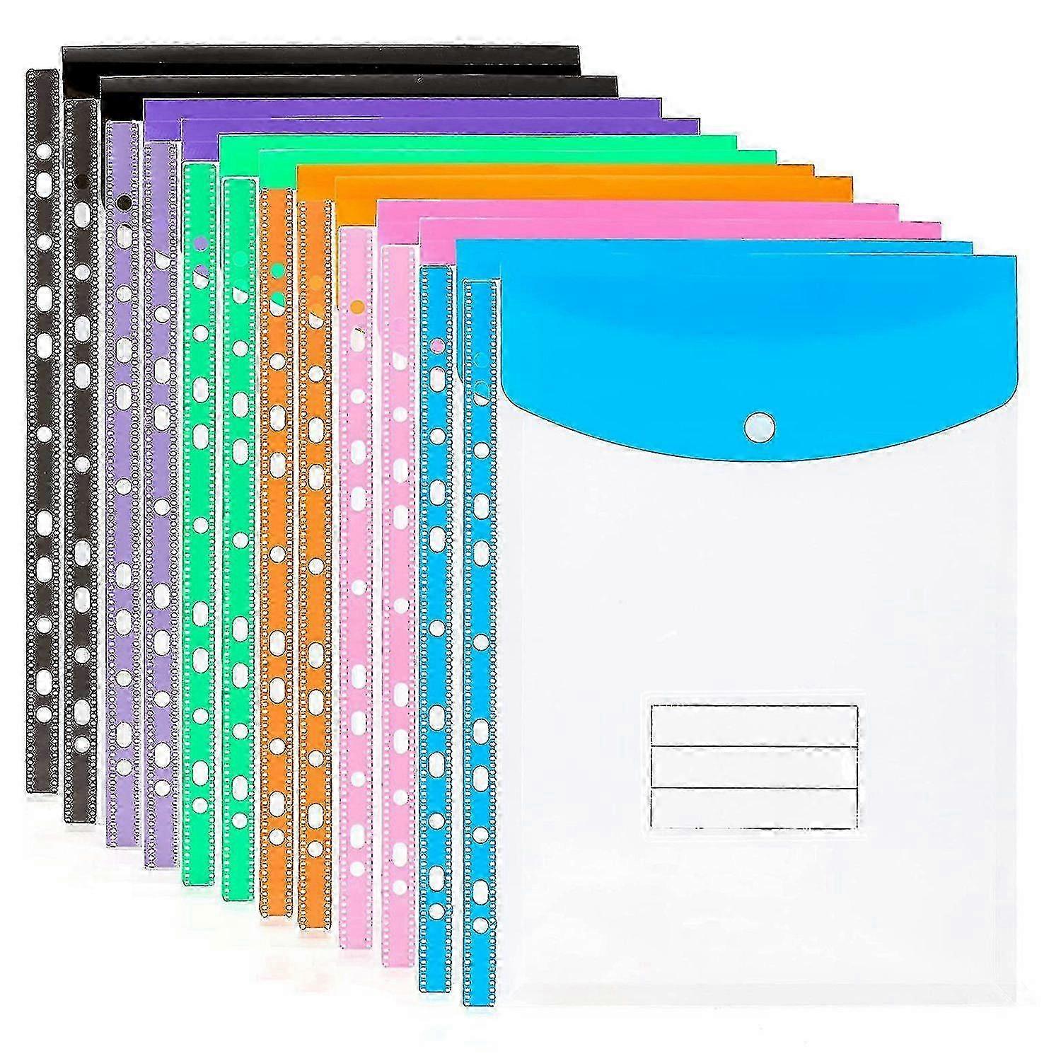 12 Pack A4 Punched Pockets Plastic Wallets - Expandable 11-Hole Pocket File Folders for Documents & Organization