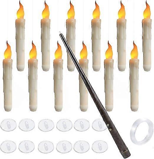 Pack of 12 Halloween Decoration Floating Candles, Floating Candles with Wand Remote Control Flickering Hanging Flying Candles for Home Church Wedding