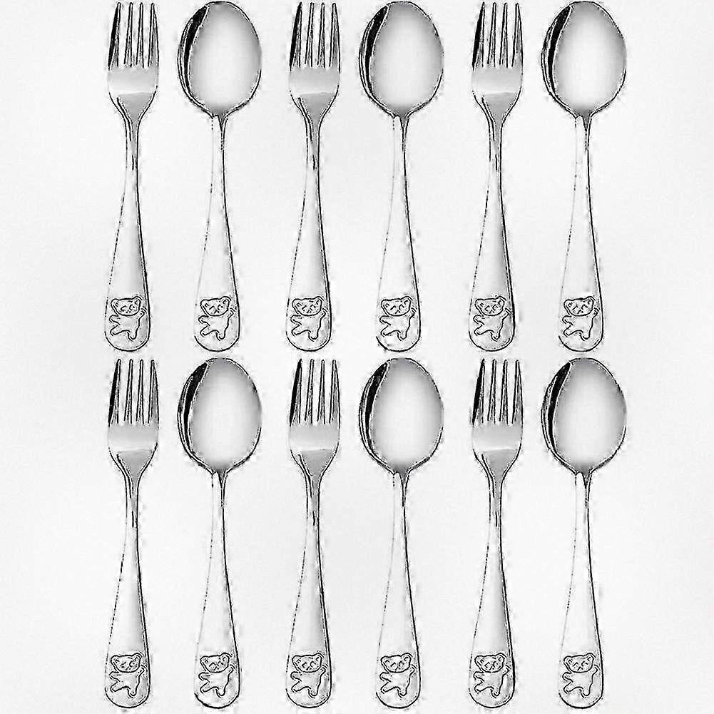 Safe materials: Made of high-quality stainless steel, this children's silverware set is durable, rust-proof, and dishwasher-safe for hygienic use. Perfectly sized for small hands, it��s ideal for daily meals or as a gift for birthdays, Easter, or Christmas. Design: Features a cute engraved bear pattern, appealing to kids of different ages and genders, from toddlers to preschoolers. Recommended for children aged 24 months and above. Package includes: - 6 forks - 6 spoons Note: Slight color variations may occur due to lighting or screen settings. Size tolerance: +/- 1-3cm.