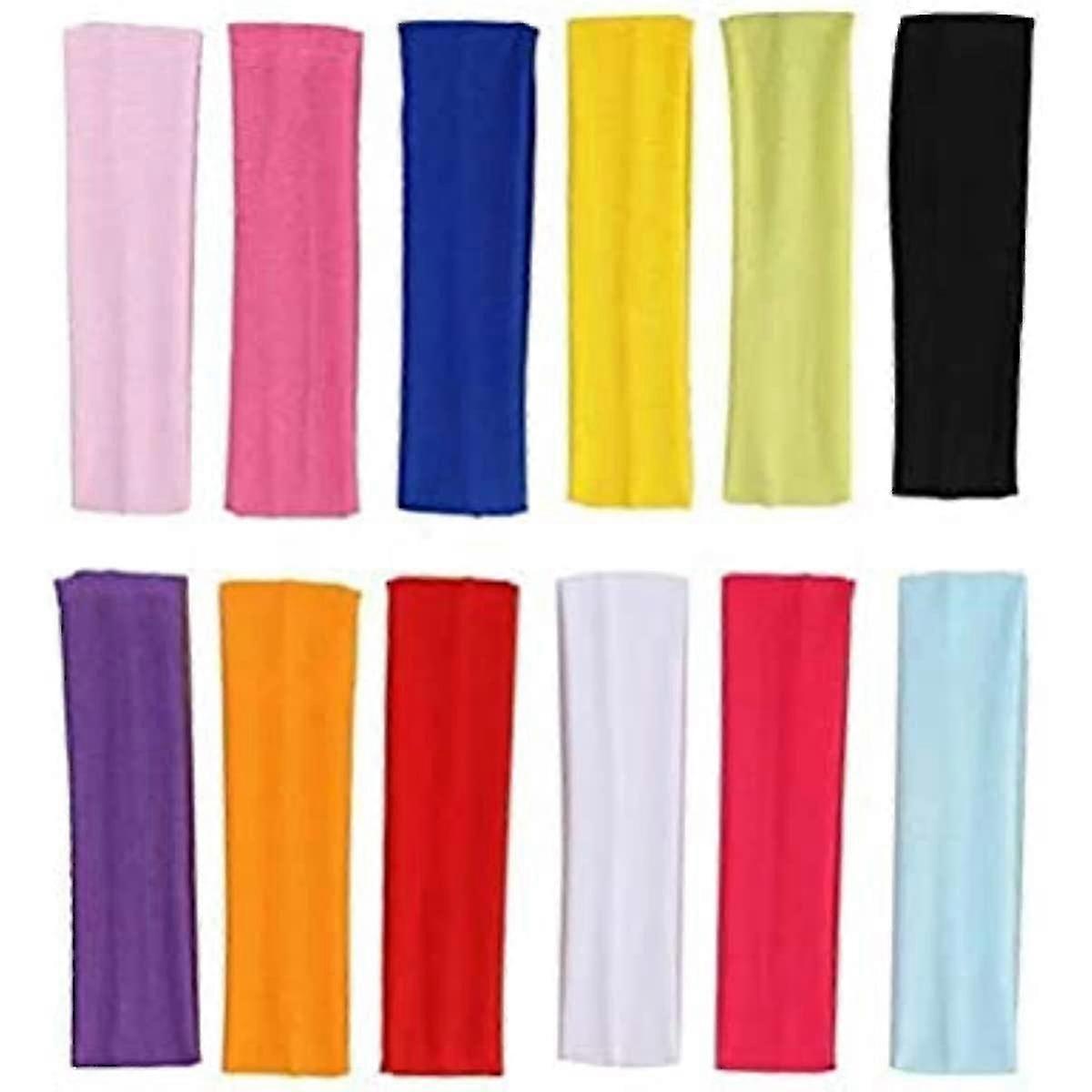 1 Pack Of 12 Pieces Head Band Sports Hair Band Portable Soft Elastic Head Band Fitness Hair Hoop Hair Wrap Nice For Sports Running Fitness Workout Yog