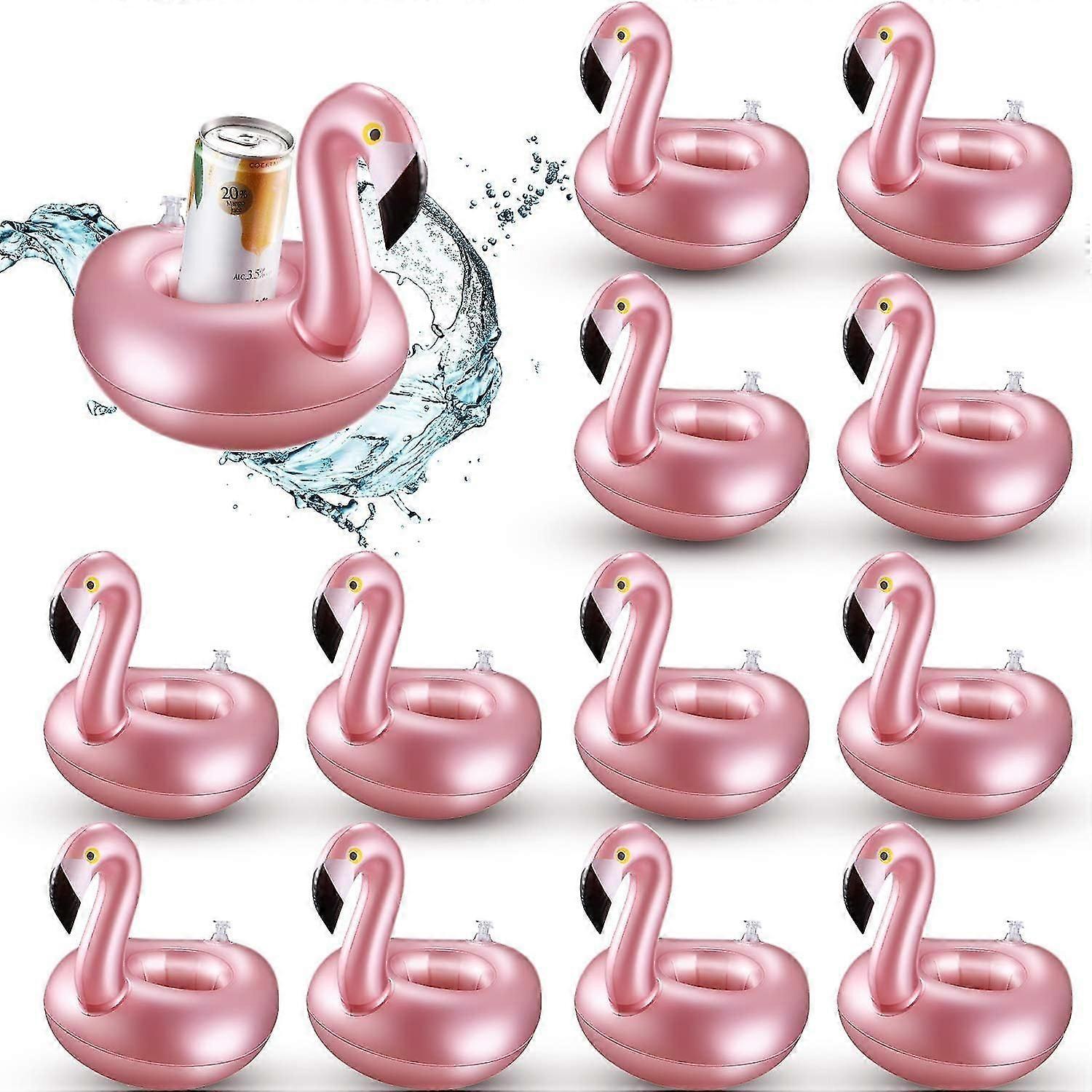 12 Pieces Inflatable Drink Holder Flamingo Drink Floats Reusable Inflatable Cute Animal Cup Coasters Pool Cup Holders For Summer Swimming Party