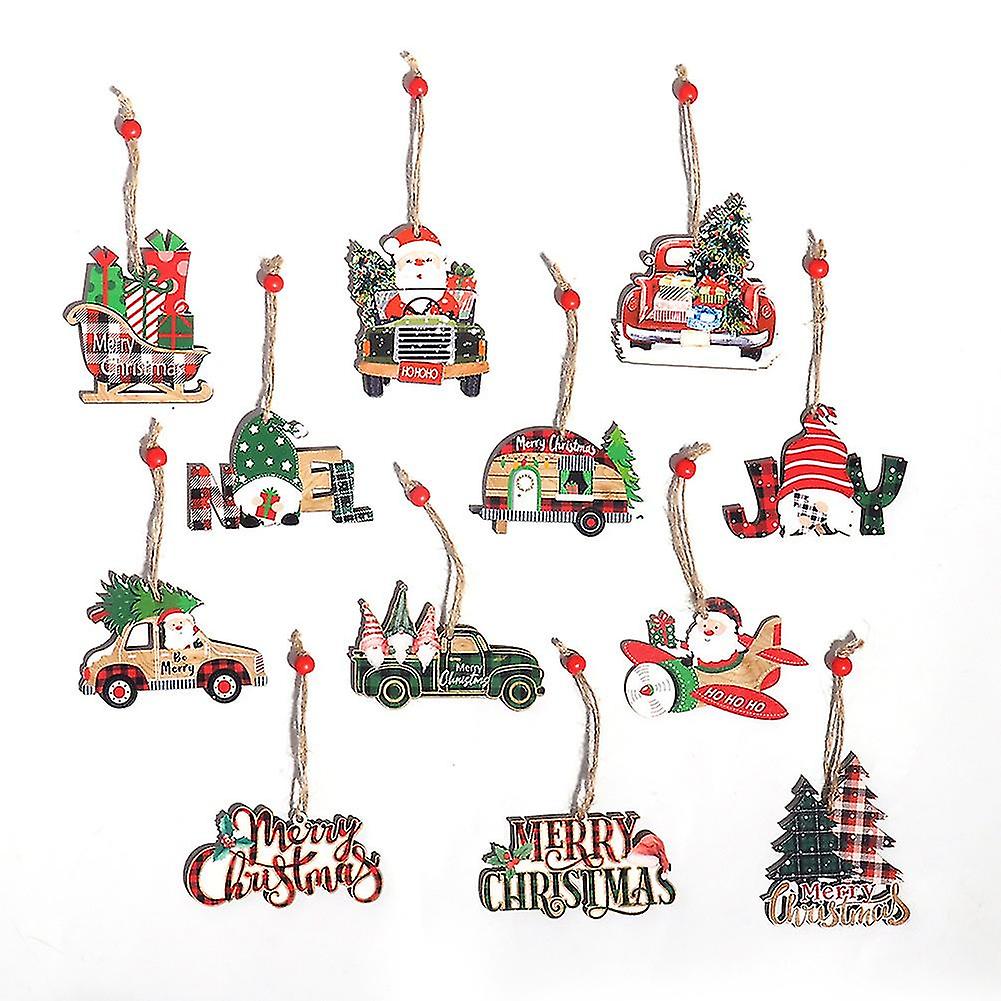 12 Pieces Christmas Wooden Hanging Ornaments Red Car Truck Wooden Hanging Craft For Decoration