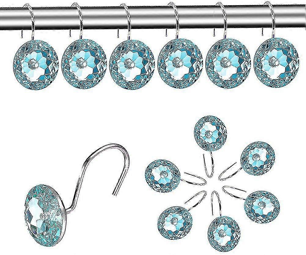 12-piece Shower Curtain Hooks - Made Of Acrylic Crystal, Crystal Transparent