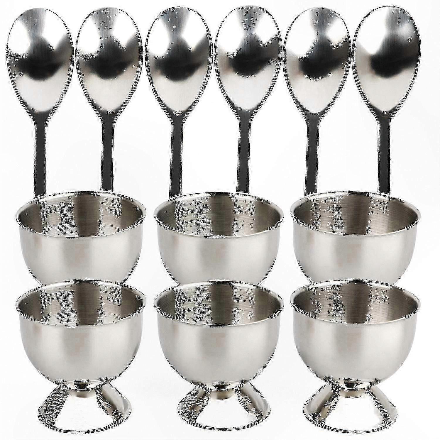 12-Piece Stainless Steel Egg Cup Set with Holders and Spoons for Breakfast Serving