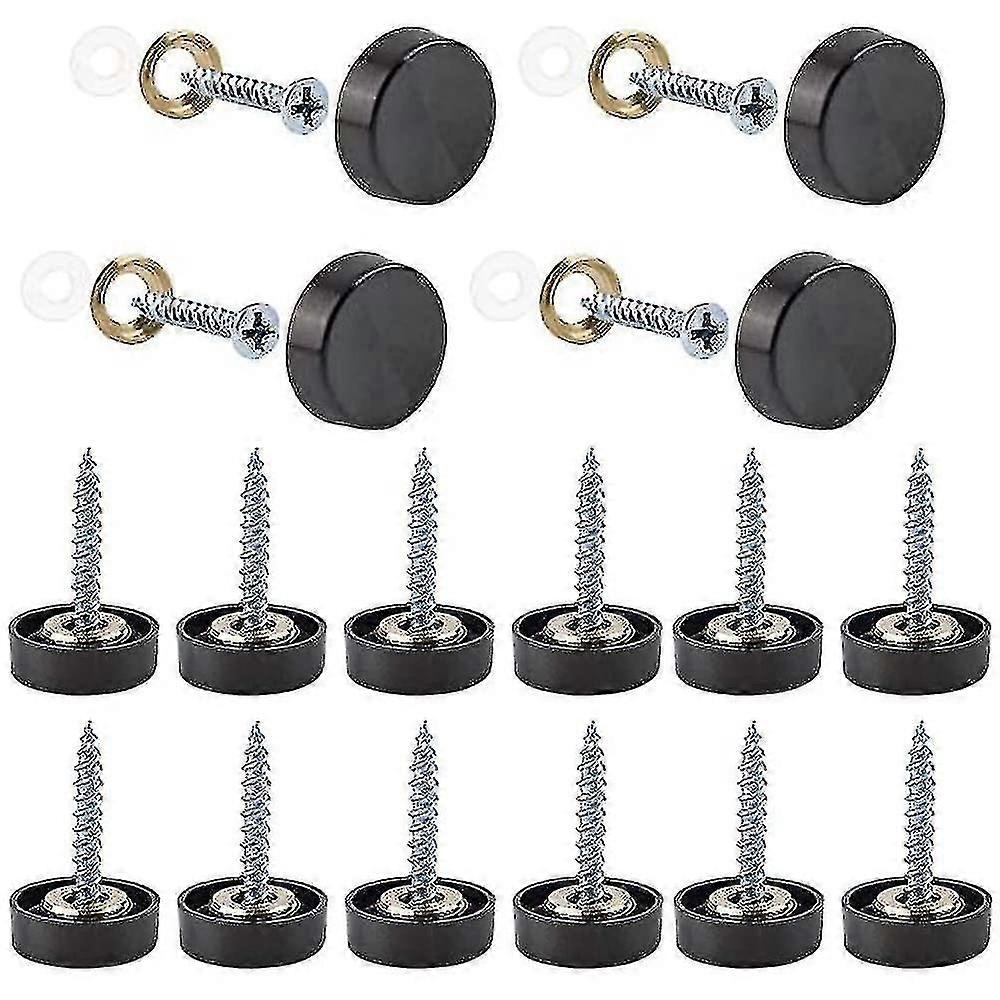 Material: 304 Stainless Steel Size: 19MM Quantity: 12 Pieces Color: Black Features: 1. These mirror screws are made of sturdy stainless steel, and the surface is brushed, waterproof and rustproof. 2. This stainless steel mirror nail uses thickened screws. It is durable, not easy to deform and break. 3. The nut perfectly covers the exposed screw. The black appearance and the brushed surface make the screws more beautiful and make the mirror more elegant. 4. These decorative nail covers are widely used in mirrors, coffee tables, bathroom panels, cabinets, glass signs and other wood or glass furniture.