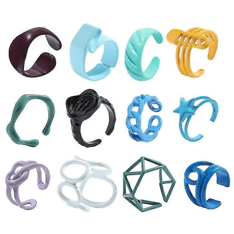 12-piece Set Colorful Fashion Alloy Open Stackable Finger Knuckle Ring
