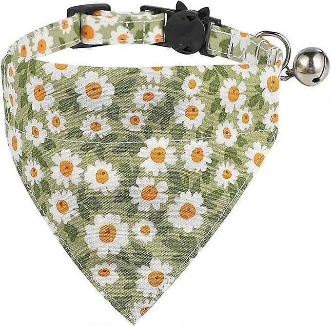 1/2Pcs Breakaway Cat Collars,Adjustable Floral Daisy Printed Cat Dog Neckerchief with Bell Dog Bandana Bow Tie Triangular Cat Scarf(Bandana,Green)