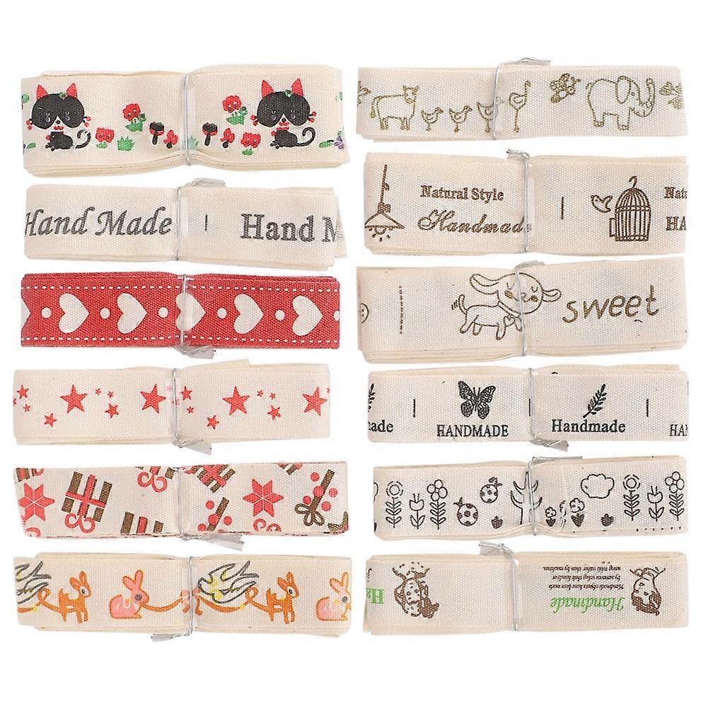 12 Pcs Polyester Cotton Ribbon Cartoon Print Hand Made DIY Sewing Gift Clothing Accessories