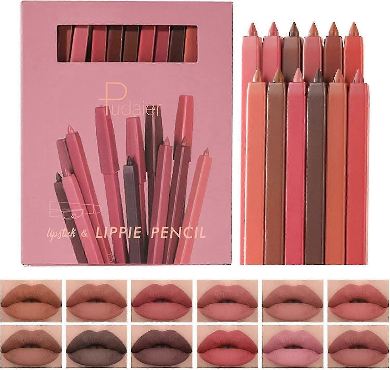 12Pcs Matte Lip Liner Set Lipstick Velvety Lip Crayon Plumper Long Lasting Waterproof Non-Stick Lip Gloss Makeup Gift Set