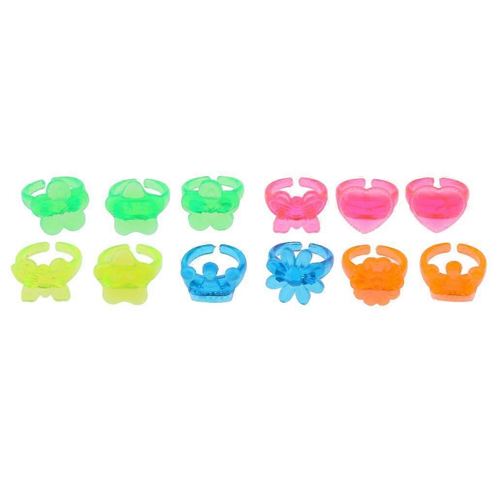 12 Pieces Mixed Color Kids Plastic Rings Jewelry Pretend Play Toys Random