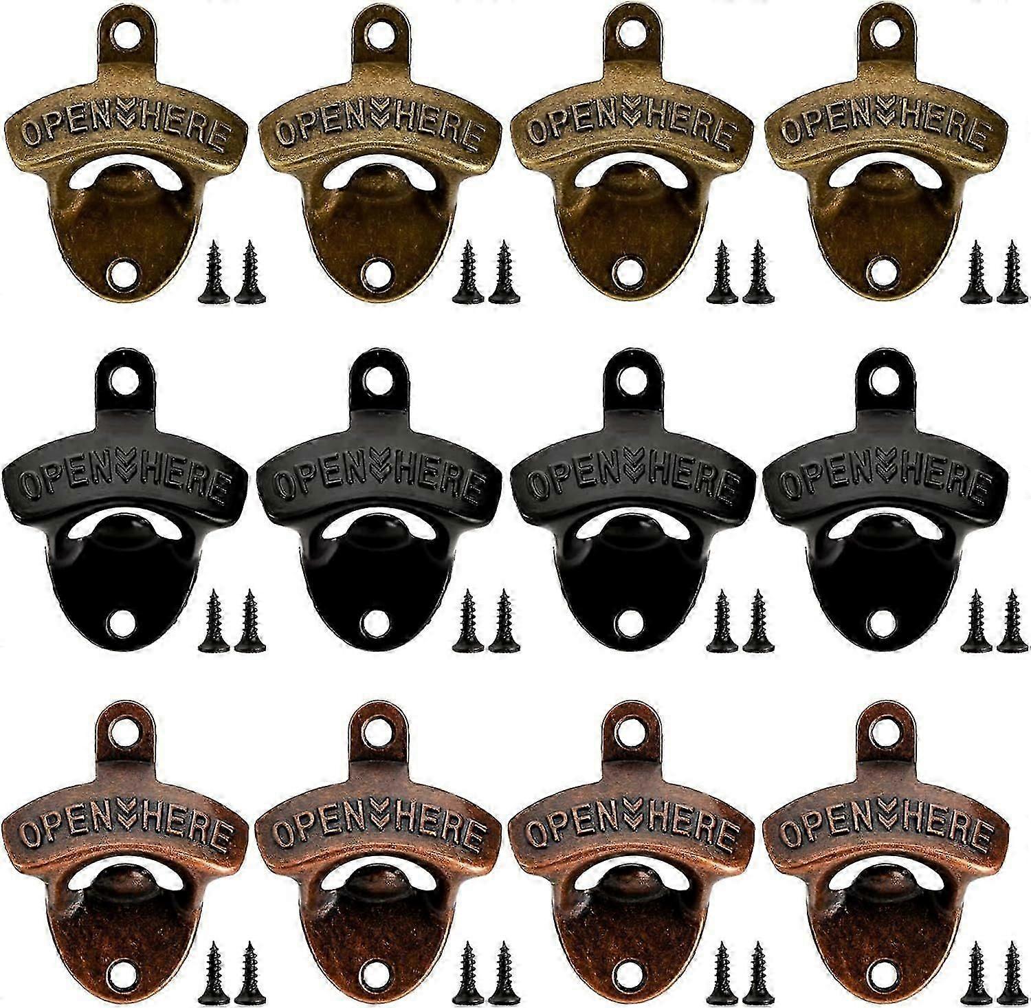 12 Pieces Wall Mounted Bottle Opener, Vintage Beer Bottle Opener with Screws