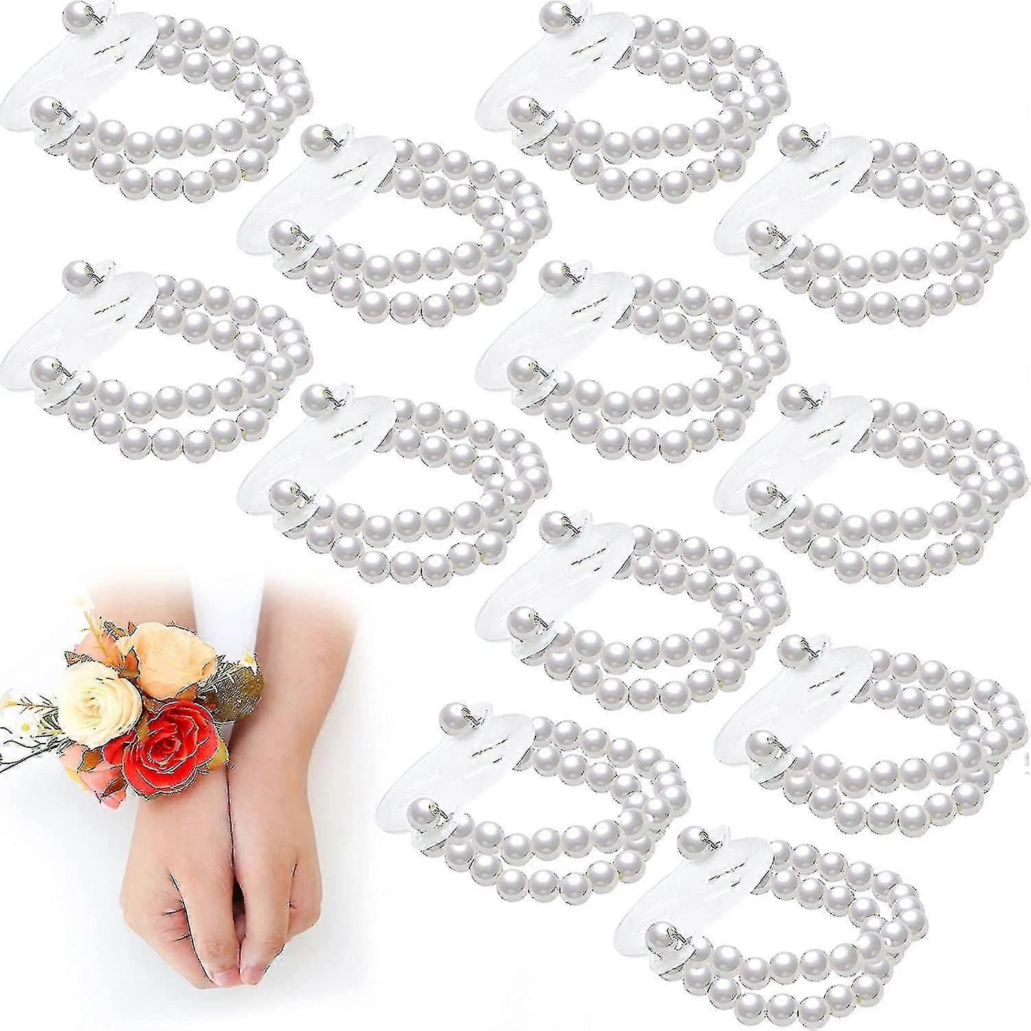 12 Pieces Elastic Pearl Wristband Wristlet Corsage Accessory Stretch Pearl Wedding Wrist Diy Decor Accessory Corsage Pearl Bead Wristband For Wedding