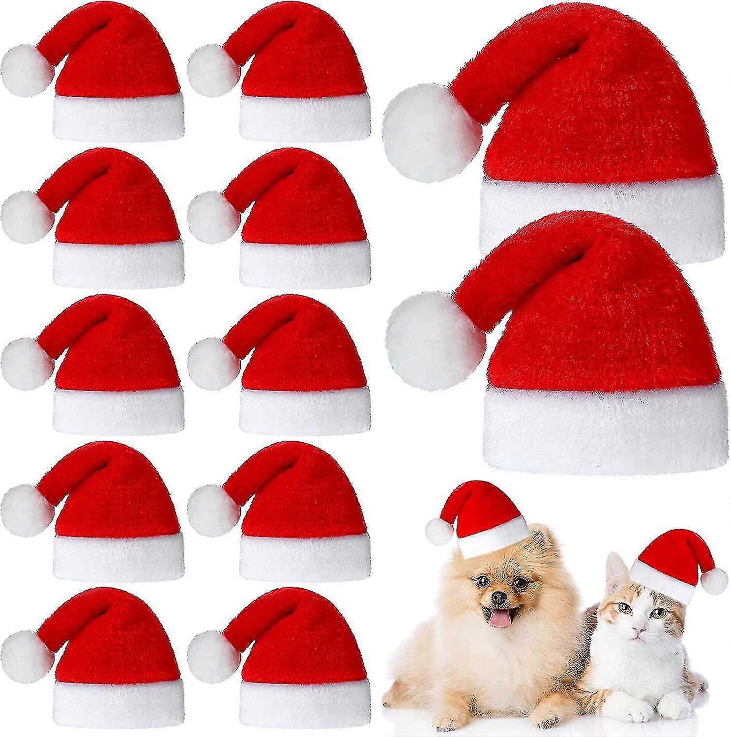 12 Pieces Dog Santa Hat Pet Christmas Hat Soft Plush Cat Hat Pet Costumes For Small Dog Cat Puppy