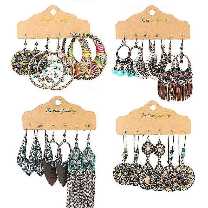 12 Pairs Fashion Hollow Pendant Earring Set. Bohemian Earrings. Tassel Rings Gift