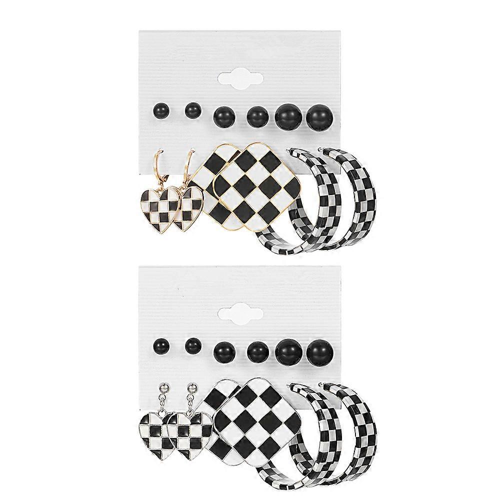 12 Pairs White Earrings Checker Earrings Checker Hoop Earrings Geometric Striped Earrings Checkered Earrings Dangle