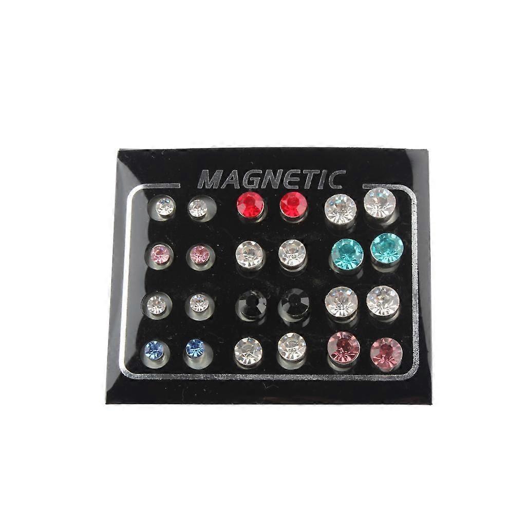 12 Pair Mixed Size Multi-Color Crystal Rhinestone Magnetic Earrings Ear Stud