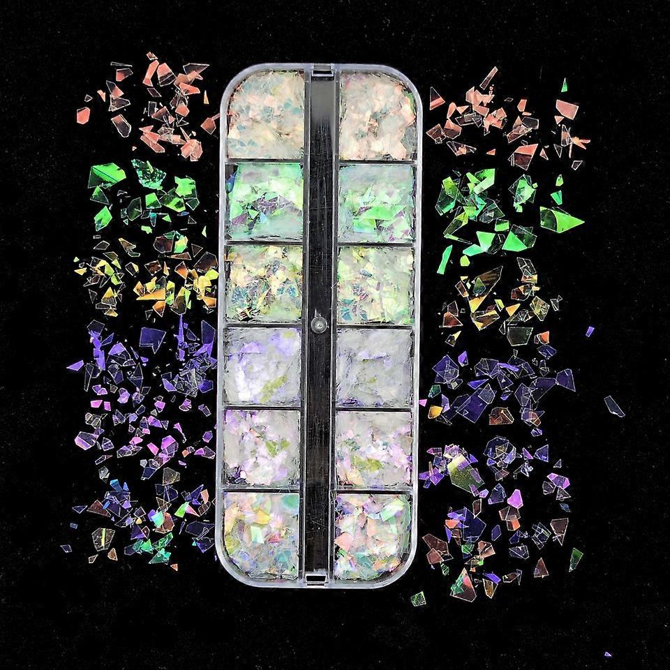 12 boxes holographic nail sequins, flakes ultra-thin colorful glitter decal, for nail art decoration, cosmetic festival