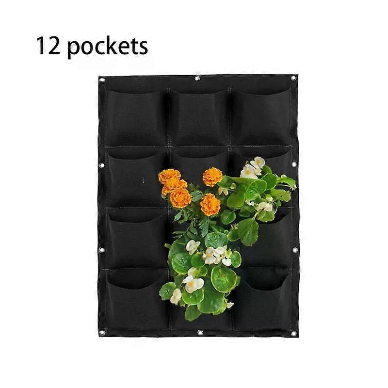 12 Pockets Vertical Planter Wall Hanging Planting Bags Black Pocket Garden DIY Decoration Accessories Balcony Pot for Flowers D1