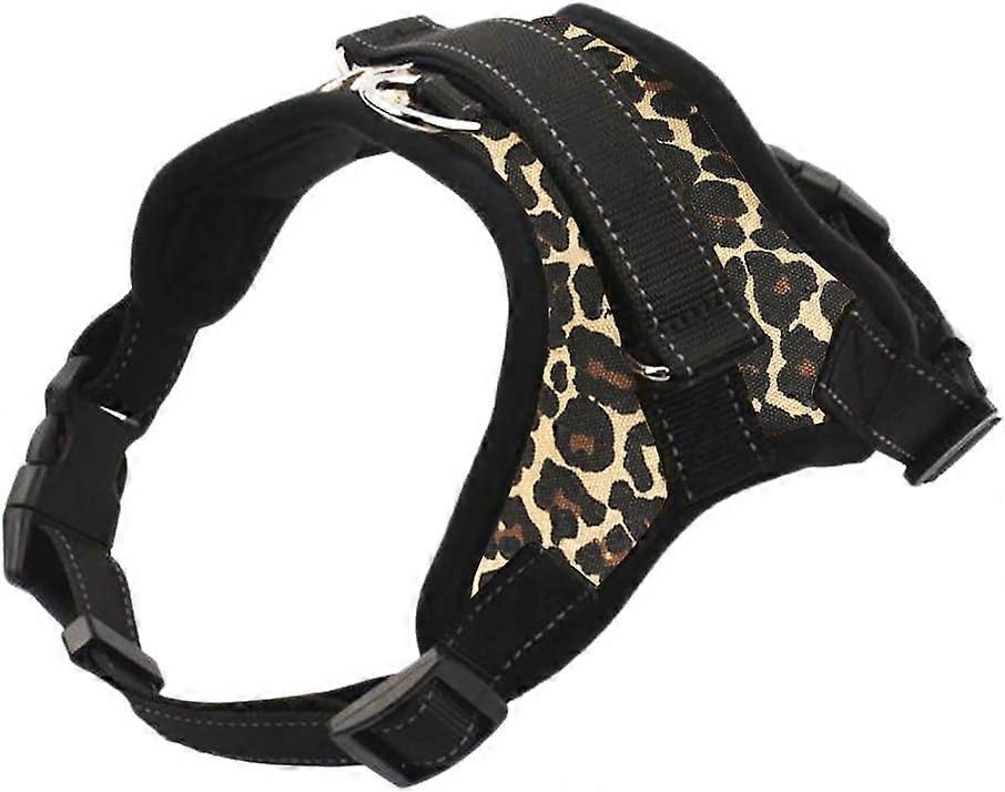 1.2 Meter Pets Dogs Padded No Pull Leads Leash and Lockable Harness Vest Set With Handle Adjustable Heavy Duty Harness for Medium Large Dogs Car Travel Training Walking, Black/Camouflage/Leopard, S/M/L/XL