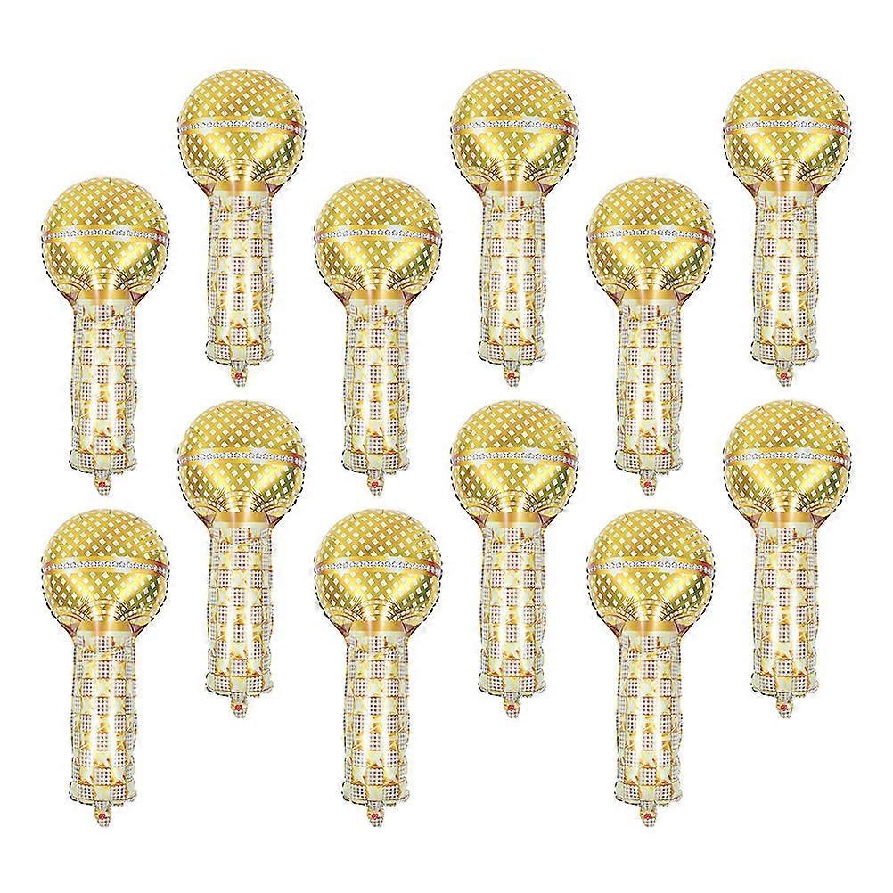 12 Pcs Inflatable Microphone Props Perfect For 90s Retro Party Decorations With Aluminum Film Material In Golden Finish