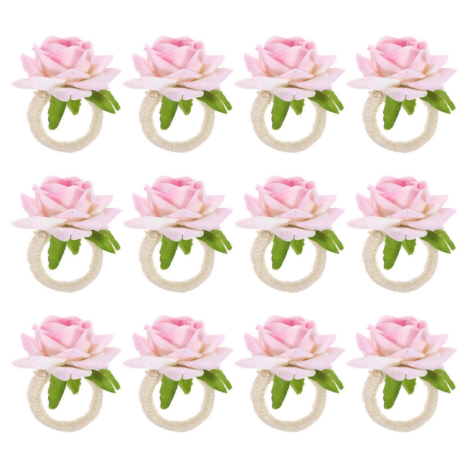 12pcs Elegant Rose Flower Napkin Rings Reusable Decorative Holders for Wedding, Restaurant & Event Table Settings Chic Pink Design for Stylish