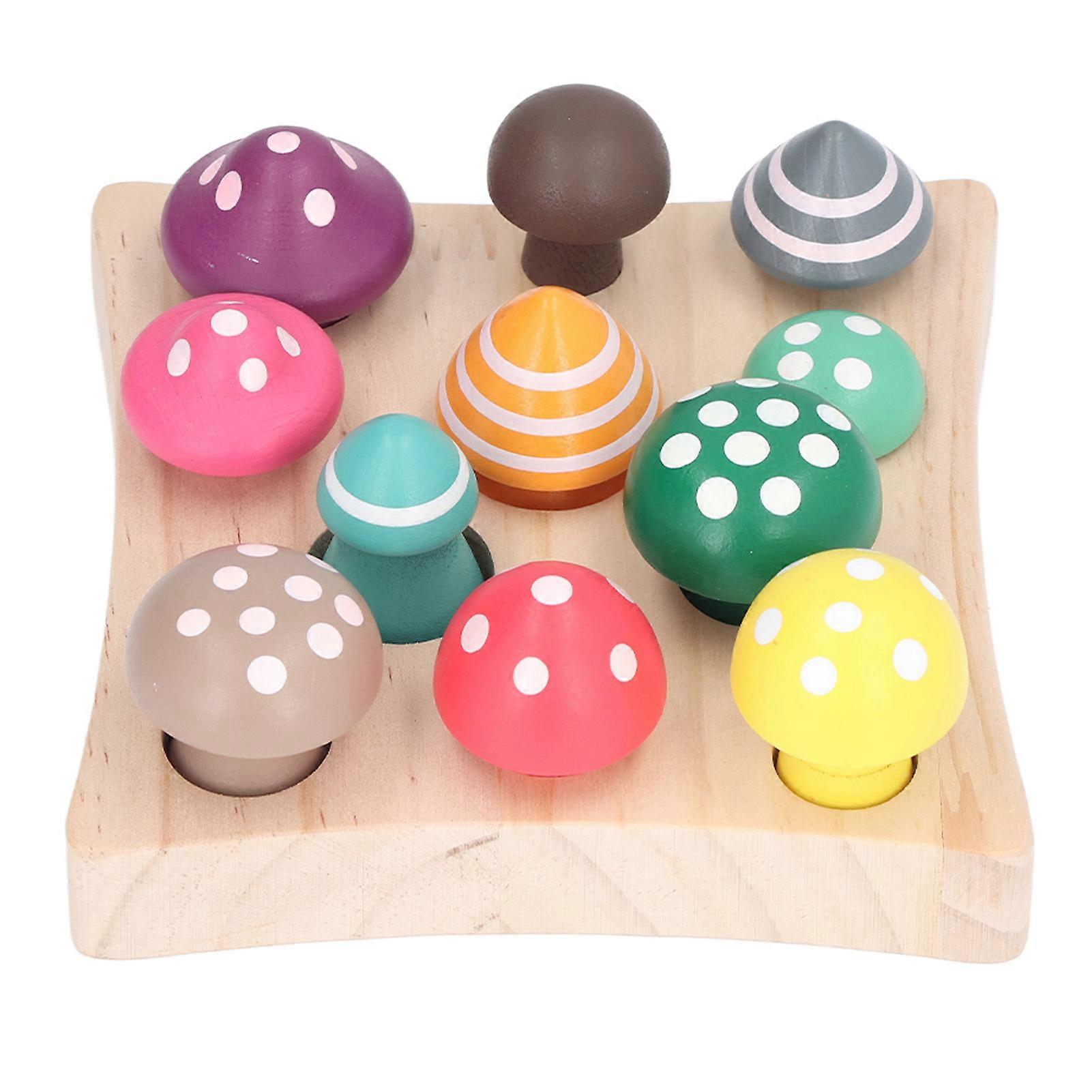 12Pcs Colorful Wooden Mushroom Picking Toys Simulation Counting Educational Basswood Mushroom Game