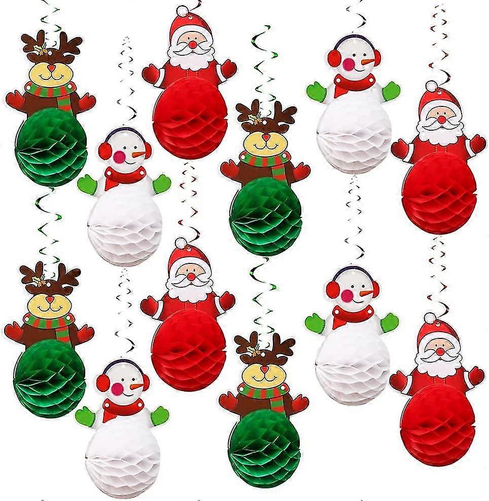 12 Pcs Christmas Decorations Set Christmas Decoration Honeycomb Balls Christmas Hanging Swirls Decorations Balls Santa Reindeer Snowman Ceiling Swirls Dangling Decorations