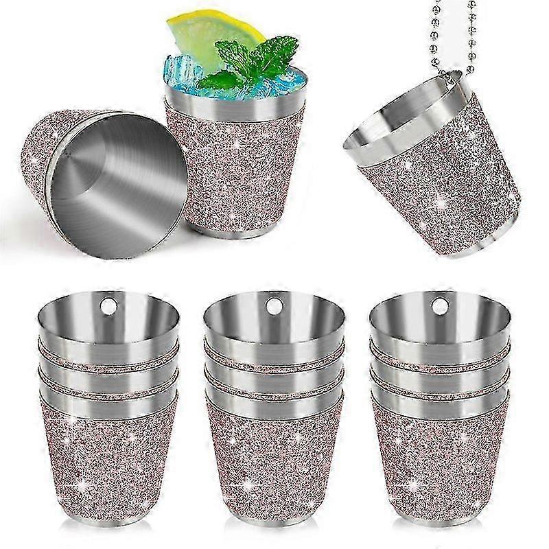 12Pcs Shot Cups Metal for Hanging Shot Glasses Stainless Steel with Chain Shot Glass 30ml Shot Cup for Wedding Parties--Pink 2025