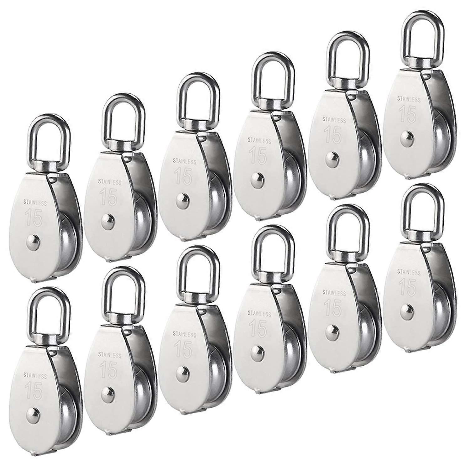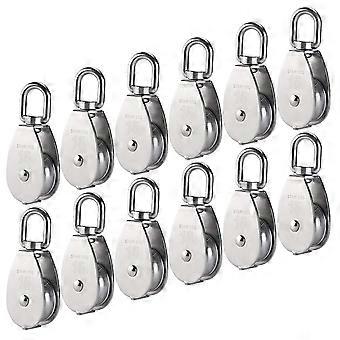 12Pcs Single Pulley Block 304 Stainless Steel Suitable, Can Rotation