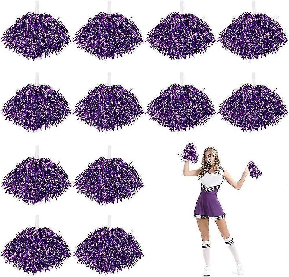 12 Pcs Cheerleading Pom Poms. Metallic Cheerleading Pom Poms For Kids School