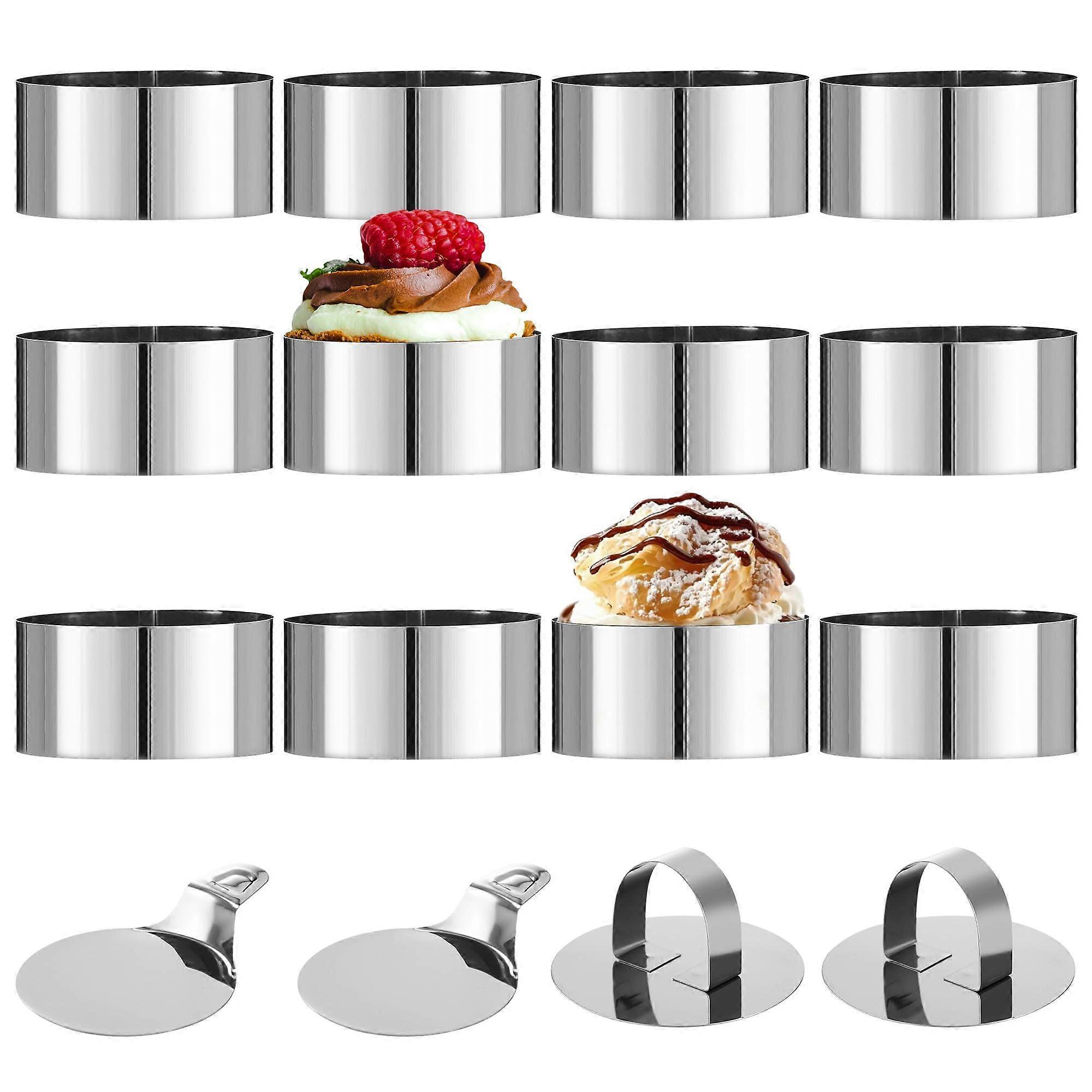 Pack of 12 Dessert Rings and Food Rings, Stainless Steel Food Rings with Lid and Base, 8 cm Round Mousse Ring, Suitable for Mousse and Biscuits