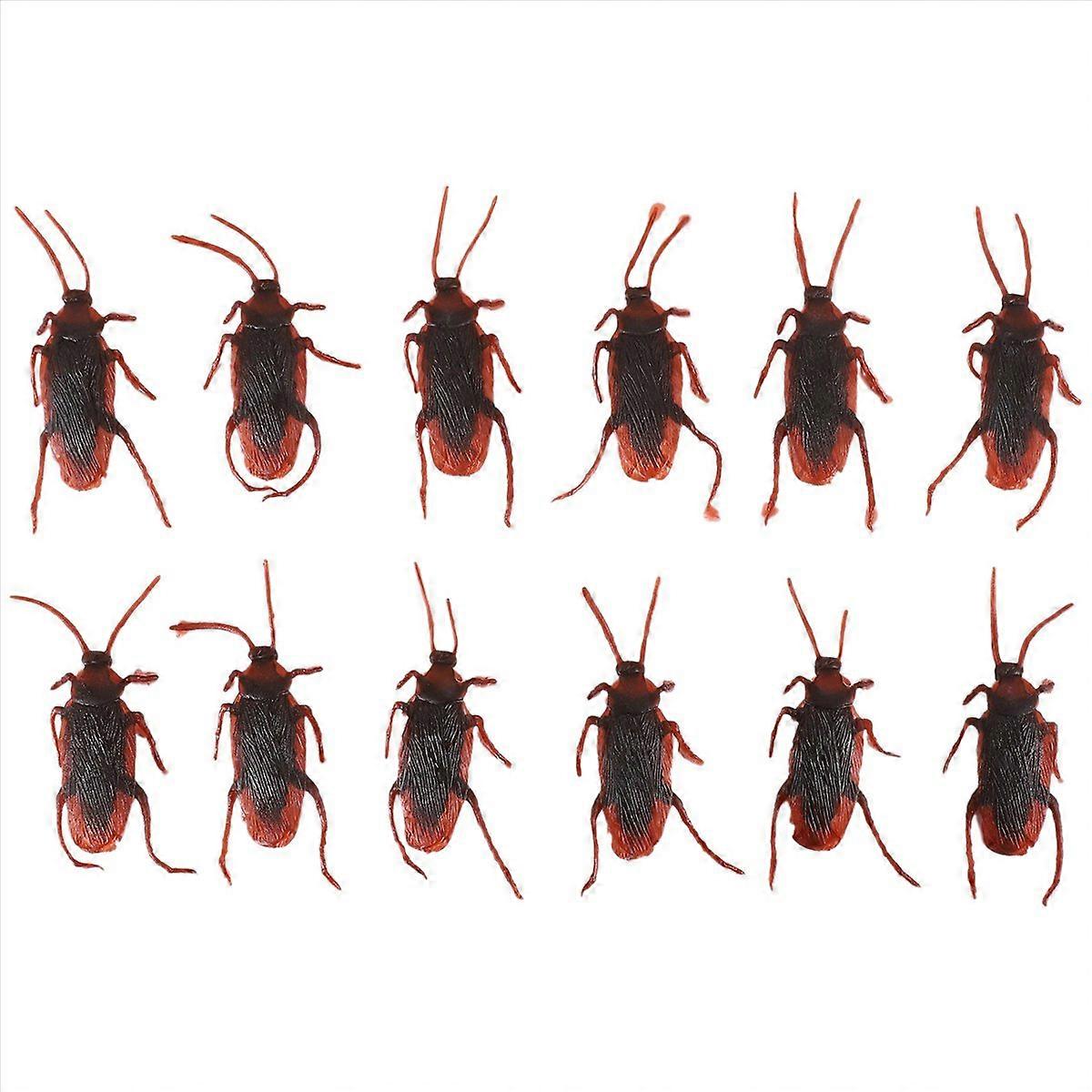 12 Pcs Halloween Simulated Plastic Cockroaches Deceptive Props Toy Trick Decor