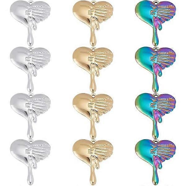 12 Pcs Heart Charms 304 Stainless Steel Melting Heart Charms 30mm Unique 3D Heart Charms Necklace Jewelry