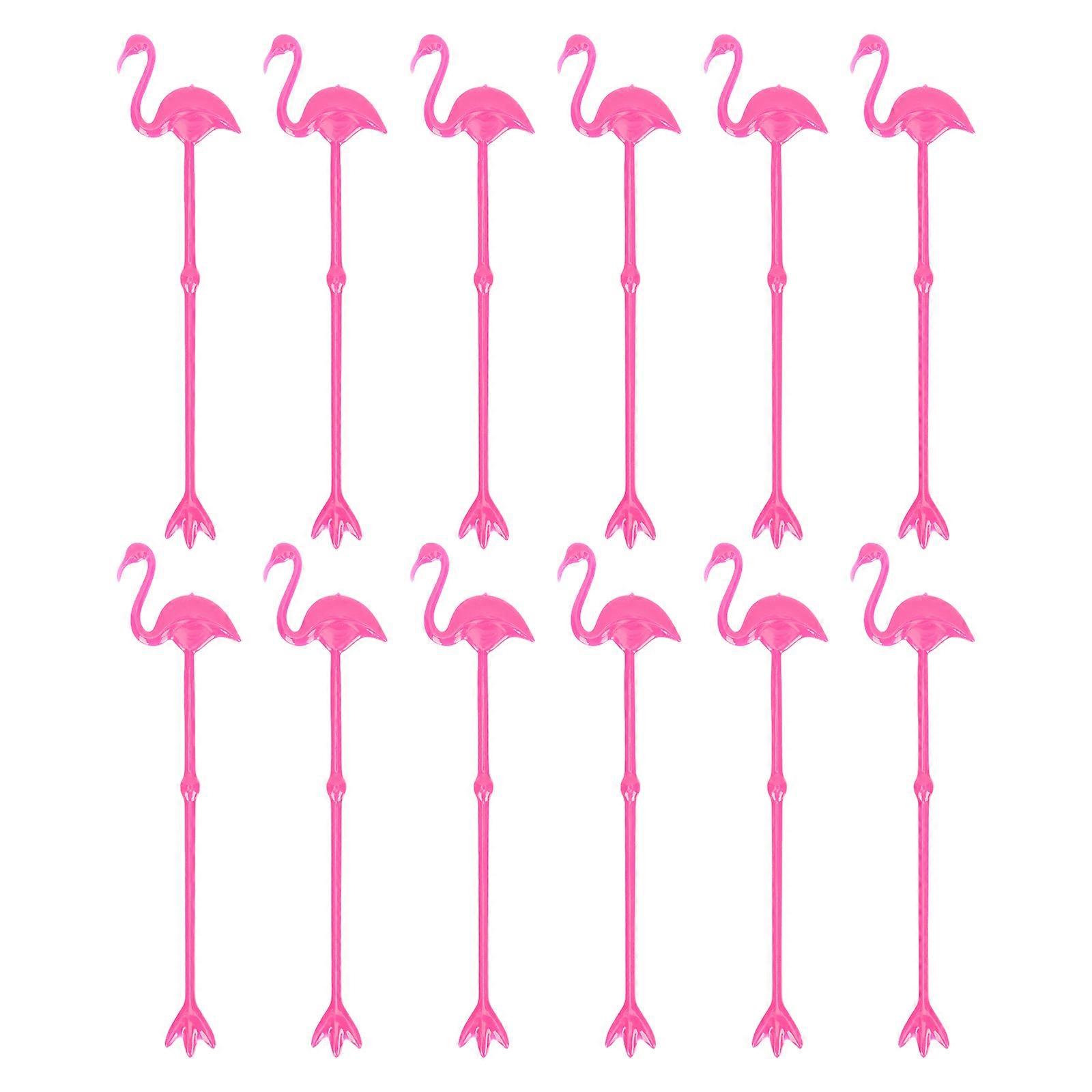 12Pcs Plastic Cocktail Stirrers Flamingo Shaped Stirring Sticks Beverage Juice Mixing Sticks