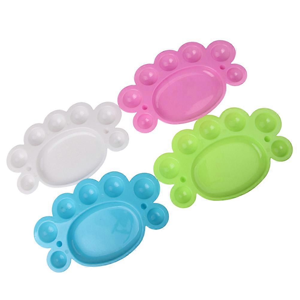 12Pcs Footprint Shape Plastic DIY Art Paint Drawing Tray Oil Water Colour Painting Pallet(Pink White Green and Blue)