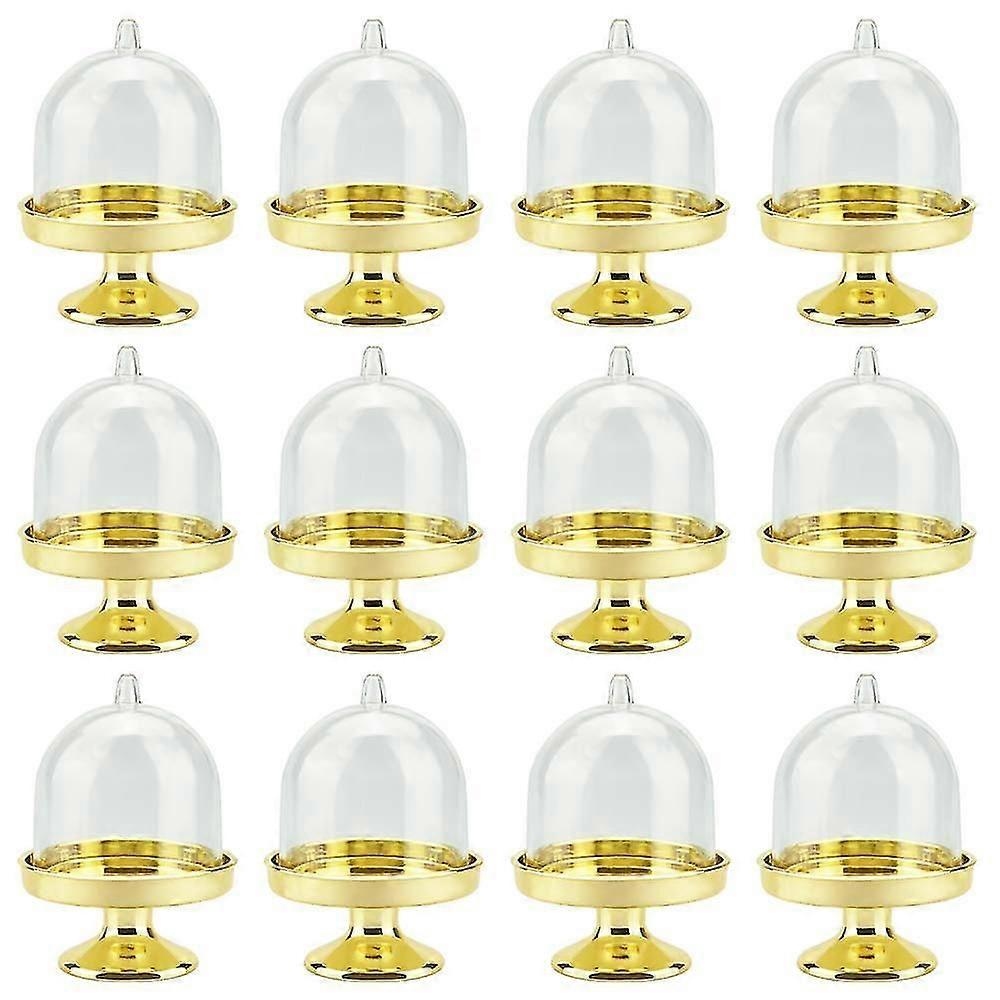 12 Pcs Mini Cake Stand, Cupcake Display Plate Candy Holders Plastic Candy Box For Chocolate, Cheese, Coconut Macaroons, Rum Balls (golden)